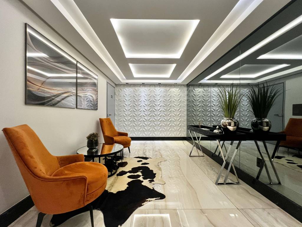 2 Dormitórios (1 suíte) 01 Banheiro social + 01 lavabo 85, 76 m² privativos | 120, 41 m² totais Vaga de garagem com ótimo acesso Frente Norte – Sol o dia todo Mobiliado – é entrar e morar Persianas automatizadas