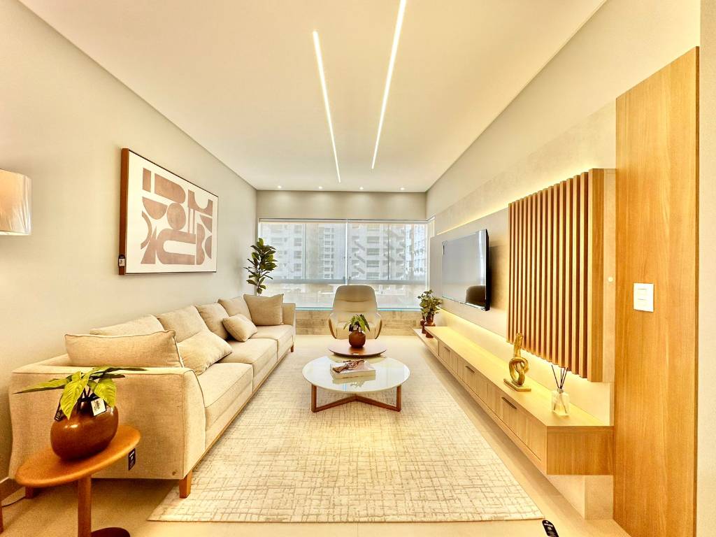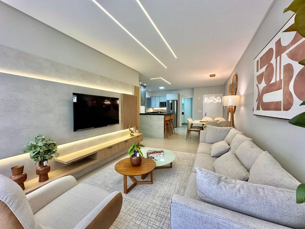 Finamente mobiliado e decorado 02 dormitórios sendo 01 suíte sacada frente 01 banheiro social Área de serviço separada Cozinha americana Churrasqueira Ar condicionado instalado 01 box de garagem 83 m2 área privativa Edifício infra estrutura completa piscina aquecida adulta e infantil espaço fitness salão de festas decorado 02 Elevadores Hall decorado