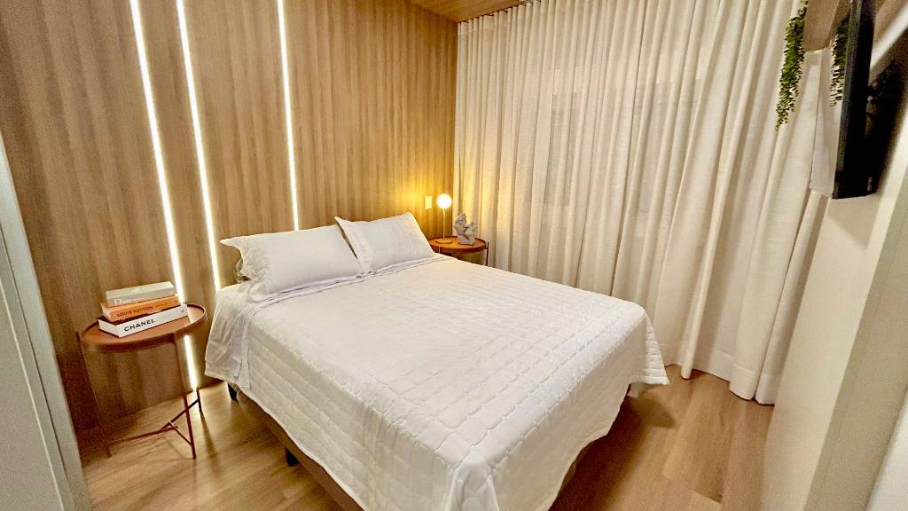 TERRAÇO MOBILIADO E DECORADO À VENDA COM INFRA FANTÁSTICA Sacada de frente 02 dormitórios (sendo 01 suíte) Terraço com móveis externos Banho Social Posição Oeste/Sul Living Integrado 93 M² privativos 01 Box + 01 depósito Edifício 02 Elevadores Zelador Permanente Infraestrutura Completa