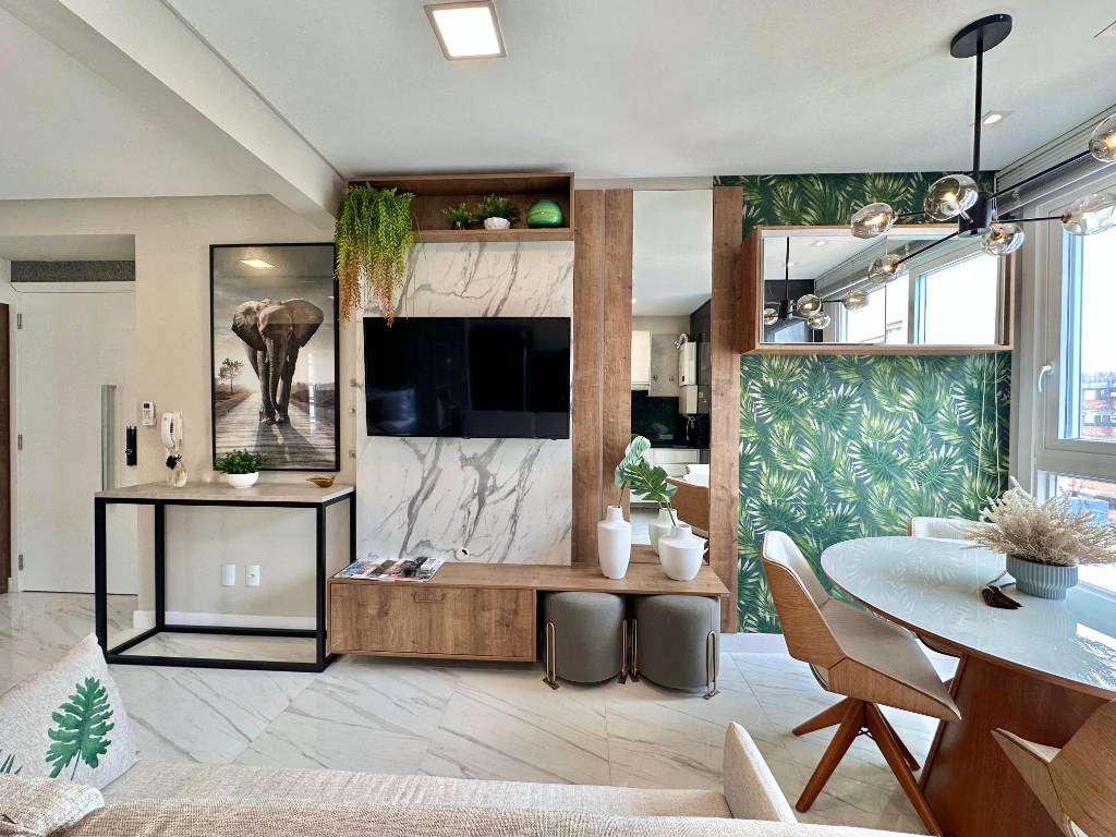SEU APARTAMENTO NA PRAIA COM INFRA ESTRUTURA E PRONTO PARA USO Loft Decorado Apto completo Living integrado Churrasqueira Vista Liberada Ar Split instalado Água quente instalada Gás central Vaga de garagem térrea