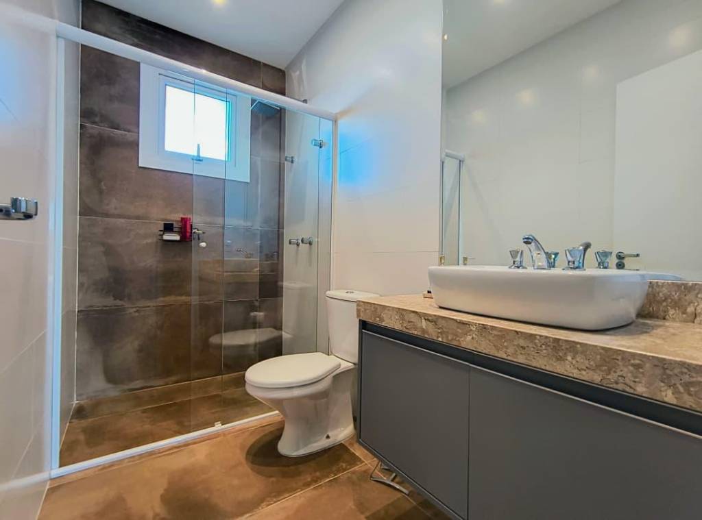 São 4 suítes, lavabo social, living maravilhoso composto por sala de estar, hall, cozinha com espaço gourmet e churrasqueira, totalmente mobiliada e decorada e pra completar aquela piscina especial de primeira a beira lago