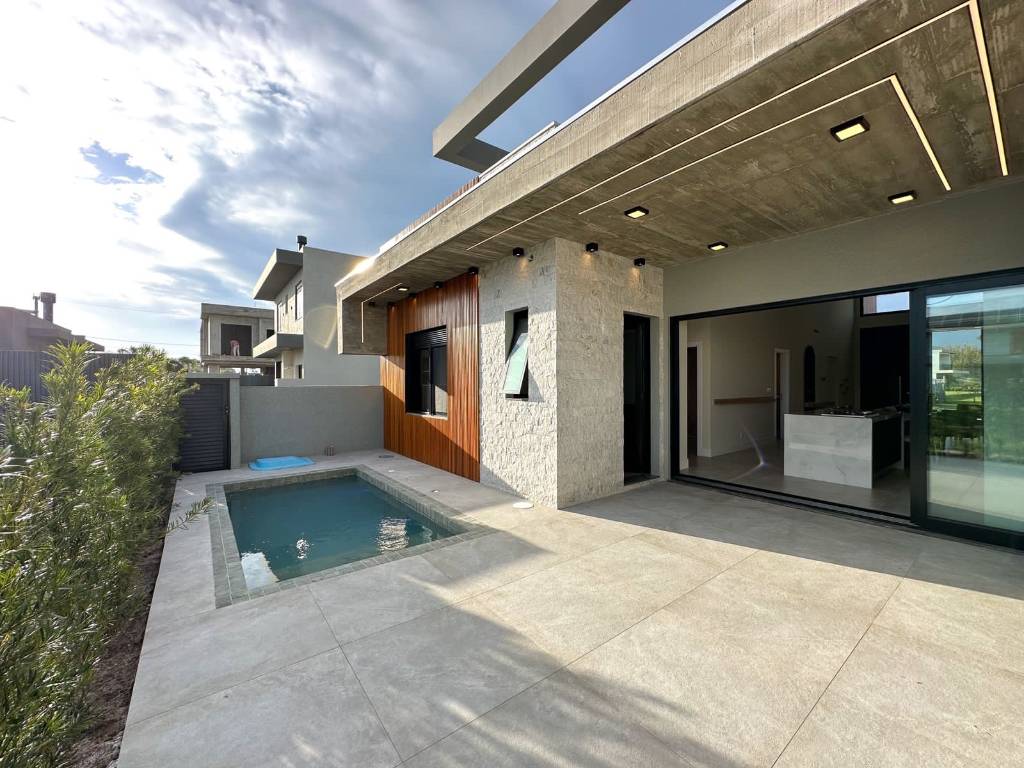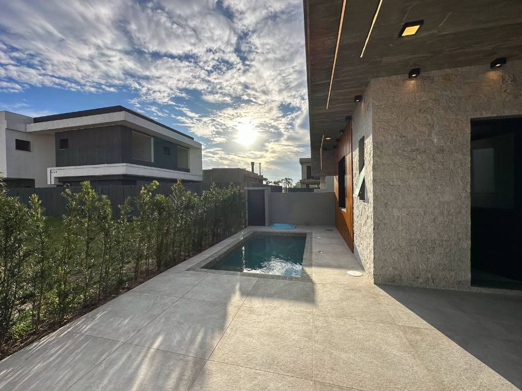 CASA À VENDA! CONDOMÍNIO SUNSET ——————————————— Confira: Casa com 173M² 04 Suítes Lavabo Mobiliada Decorada Piscina de concreto Pé direito Alto Paisagismo Aberturas Externas em Alumínio preto Persianas automatizadas Lareira Pé direito duplo