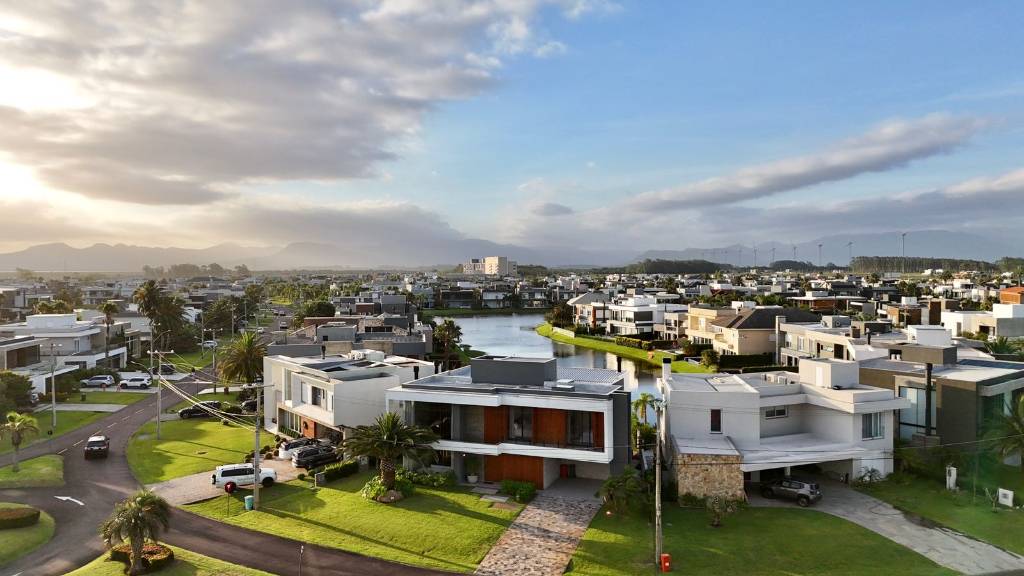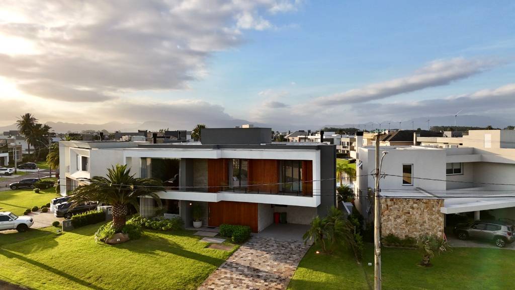 CONDOMÍNIO ENSEADA SOBRADO À VENDA COM VISTA INCRÍVEL PARA O LAGO Sobrado com 457M² 06 Suítes sendo uma master com Closet e banheira Dependência de empregada Lavabo Acabamento Alto padrão Finamente decorado Completamente Mobiliado Elevador Beira Lago Paisagismo com irrigação automática Piscina de concreto com aquecimento e tratamento de sal Automação parcial das luzes